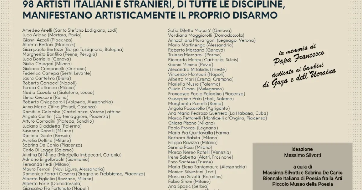 Sabato 13 settembre presso il Cantiere Museo Grillo si terrà "DISARM - ARTI | Biennale Italiana di Poesia fra le Arti 2025 - Piccolo Museo della Poesia", ininterrottamente dalle ore 10 alle ore 22.